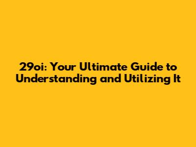 How to Effectively Utilize 29oi: A Practical Guide