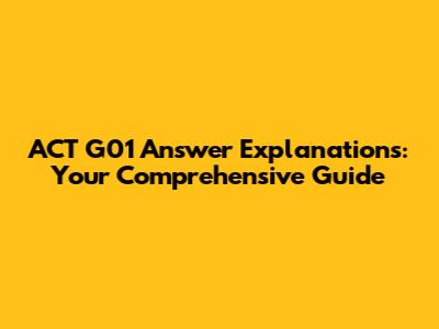 Hey guys! So you've tackled the ACT G01 and now you're itching to understand those answers, right? No sweat! This guide is here to break down each question, giving you the insights and explanations you need to boost your understanding and nail it next time. Whether you're aiming to improve your score or just curious about a particular problem, we've got you covered. Let’s dive in!