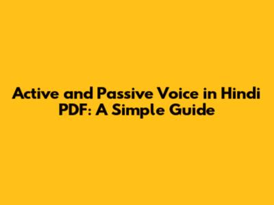 Finding Active and Passive Voice PDF Resources in Hindi