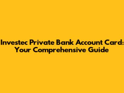 Investec Private Bank Account Card: Your Comprehensive Guide