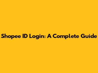 Shopee ID Login: A Complete Guide