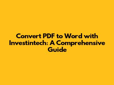 Converting PDF files to Word documents can be a real lifesaver, especially when you need to edit or repurpose the content. Among the various tools available, Investintech's PDF to Word converter stands out as a reliable and efficient option. This article will walk you through everything you need to know about using Investintech to convert your PDFs, ensuring you get the best possible results. So, let's dive in and explore how to make the most of this handy tool!