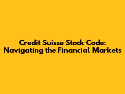 Hey finance enthusiasts! Ever wondered about the Credit Suisse stock code and how it functions within the bustling world of financial markets? Well, you're in the right place! We're diving deep into the ticker symbol that identifies this major financial player, unraveling its significance, and exploring where you can find this crucial piece of information. Whether you're a seasoned investor, a curious beginner, or just someone keen on understanding the financial landscape, this guide is crafted for you. So, let's get started and decode the secrets behind the Credit Suisse stock code!