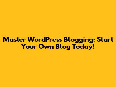 Master WordPress Blogging: Start Your Own Blog Today!