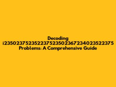 Hey everyone! Let's dive deep into the world of i235023752352237523502367234023522375! I know, the name alone might seem a bit...intimidating. But don't worry, we're going to break it down, understand the common issues, and figure out how to fix them. Think of this as your one-stop guide to demystifying the whole i235023752352237523502367234023522375 situation. Whether you're a complete newbie or someone who's already got a bit of experience, this guide has got you covered. We'll explore the basics, the common pitfalls, and some handy troubleshooting tips to get you back on track. So, grab a coffee, get comfy, and let's get started!