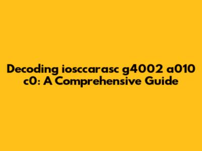 Alright, folks, let's dive deep into the mysterious world of iosccarasc g4002 a010 c0. You might be scratching your head, wondering what this string of characters even means. Well, you're in the right place! In this comprehensive guide, we'll break down each component, explore potential meanings, and provide insights into how this code might be used. Whether you're a tech enthusiast, a curious coder, or just stumbled upon this intriguing sequence, get ready to unravel the enigma.