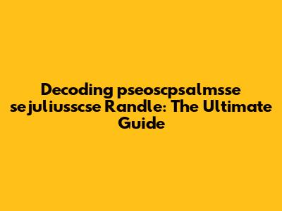 Hey guys! Ever stumbled upon a string of characters that looks like complete gibberish but you know it's got to mean something? Today, we’re diving deep into the mysterious world of "pseoscpsalmsse sejuliusscse Randle." Sounds like a password from the future, right? Well, buckle up, because we're going to break it down and explore all the possibilities of what this could mean, how it could be used, and why you might be seeing it. Let’s get started on this crazy adventure!
