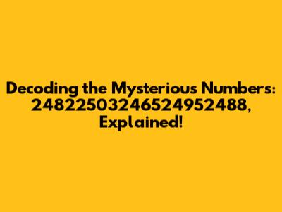 Hey there, fellow knowledge seekers! Ever stumbled upon a sequence of numbers that just screams mystery? Well, today, we're diving deep into the cryptic world of "24822503246524952488 24882497 2460249724682494." I know, I know, it looks like something out of a sci-fi movie, but trust me, understanding it is totally within our grasp. So, grab your virtual magnifying glasses, and let's unravel this numerical enigma together! This is the goal of decoding the mysterious numbers and explaining it so that it is easy to understand.