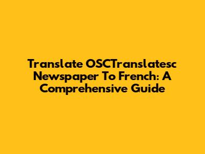 Translate OSCTranslatesc Newspaper To French: A Comprehensive Guide