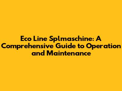 What Exactly is an Eco Line Splmaschine?