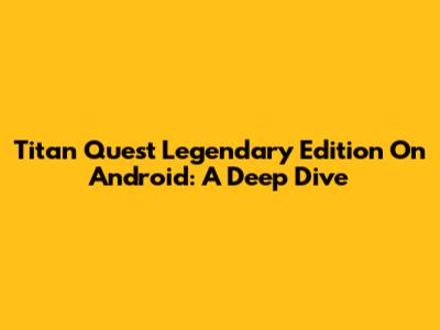 Titan Quest Legendary Edition On Android: A Deep Dive
