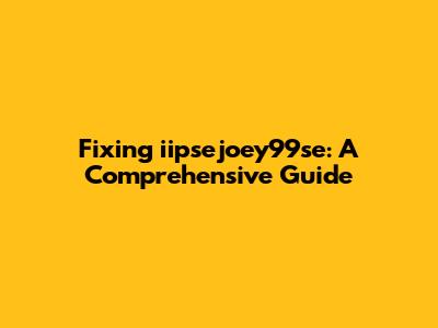 What is iipsejoey99se, and Why Does It Need Fixing?