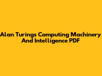 Alan Turing's Computing Machinery And Intelligence PDF