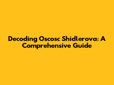 Decoding Oscosc Shidlerova: A Comprehensive Guide
