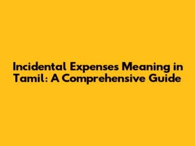 Hey guys! Ever wondered about incidental expenses meaning in Tamil? You're in the right place! We're gonna break down what these expenses are, why they matter, and how to understand them in a Tamil context. Basically, incidental expenses are those little costs that pop up unexpectedly. They're not the big, planned-for things, but they're still important to keep track of! Whether you're budgeting, managing a business, or just trying to keep your personal finances in check, understanding these costs is super useful. Let's dive in and get you all the info you need about incidental expenses, with a Tamil twist!