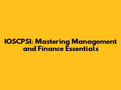 Mastering Finance in IOSCPSI