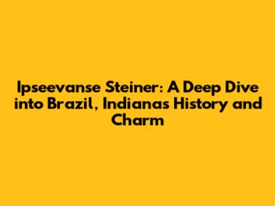 Hey there, folks! Ever heard of Ipseevanse Steiner? Probably not, unless you're a local to Brazil, Indiana. But trust me, this place is a hidden gem, and we're about to uncover all its secrets. We'll explore its rich history, the people who shaped it, and what makes it such a special place to live or visit. So, grab your virtual explorer's hat, and let's dive right in!
