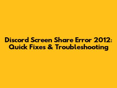 Discord Screen Share Error 2012: Quick Fixes & Troubleshooting