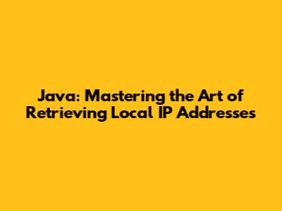 Unveiling Local IP Addresses in Java: The Basics