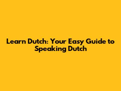 Getting Started with Dutch: The Basics
