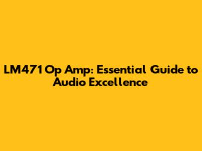 What is the LM471 Op Amp, and Why Should You Care?