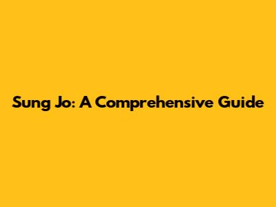 Sung Jo: A Comprehensive Guide