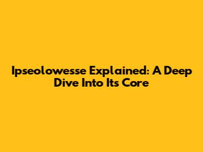 Ipseolowesse Explained: A Deep Dive Into Its Core