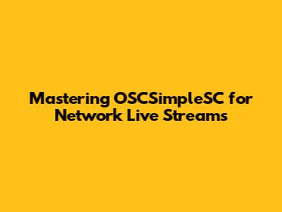 Why Choose OSCSimpleSC for Your Network Live Stream Adventures?