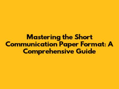 Hey guys! Ever wondered how to nail a short communication paper? They're super important for getting your research out there quickly and efficiently. Think of them as a sprint compared to a marathon – you need to be concise, impactful, and get straight to the point. In this comprehensive guide, we'll break down everything you need to know about the short communication paper format, from understanding its purpose to crafting a compelling submission. We'll cover each section, offering tips and tricks to make your paper stand out. Let's dive in and transform you into a short-communication superstar!