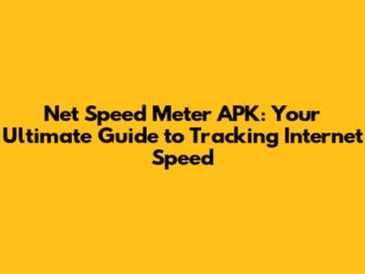 Why You Need a Net Speed Meter APK in Your Life