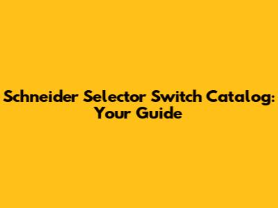 Schneider Selector Switch Catalog: Your Guide