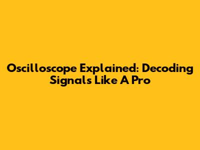 Oscilloscope Explained: Decoding Signals Like A Pro