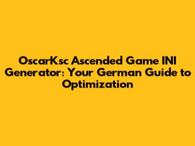 Hey guys! Are you ready to dive deep into the world of optimizing your game settings with the OscarKsc Ascended Game INI Generator? If you're a German speaker looking to get the most out of this tool, you've come to the right place. This generator is a game-changer, allowing you to tweak your INI files for maximum performance and visual fidelity. We'll break down everything you need to know, from downloading and installing the generator to understanding the various settings and how they impact your gameplay. Think of this as your ultimate German-language guide to unlocking the full potential of your gaming experience. So, grab your favorite Getränk, get comfortable, and let's get started! We will be going through all steps and configurations so you can ascend to the highest level of gaming. With the help of this guide, you'll be able to troubleshoot common issues, fine-tune performance based on your specific hardware, and achieve the perfect balance between graphics and frame rates. Whether you're a seasoned PC gamer or just starting out, this guide will provide the knowledge and confidence you need to master the OscarKsc Ascended Game INI Generator. Let's optimize! By the end of this article, you'll be equipped to create custom INI configurations tailored to your gaming preferences, ensuring a smooth and visually stunning gameplay experience. Let's begin this exciting journey together and revolutionize your gaming setup!