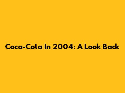 Coca-Cola In 2004: A Look Back