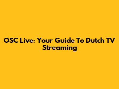 OSC Live: Your Guide To Dutch TV Streaming