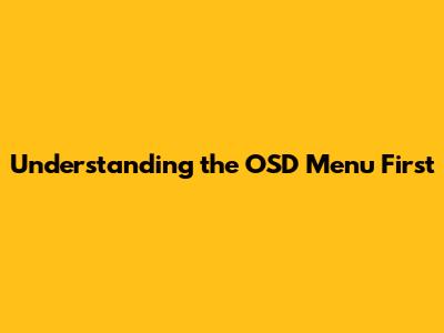 Understanding the OSD Menu First