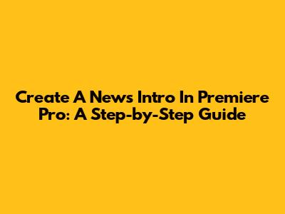 Create A News Intro In Premiere Pro: A Step-by-Step Guide