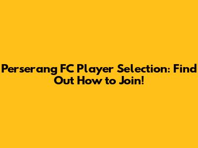 How to Prepare for Perserang FC Player Selection