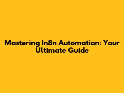 Mastering In8n Automation: Your Ultimate Guide