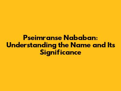 Pseimranse Nababan: Understanding the Name and Its Significance