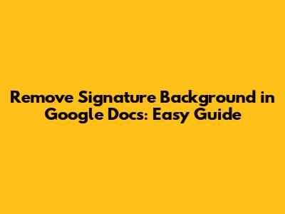 Removing the background from your signature in Google Docs might seem like a small detail, but it can significantly enhance the professionalism and clarity of your documents. Whether you choose to use Google Drawings, online background removal tools, or photo editing software, the key is to find a method that works best for you and your workflow. Each method has its own advantages and disadvantages, so experiment and see which one yields the best results for your specific needs.