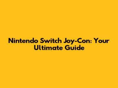 Nintendo Switch Joy-Con: Your Ultimate Guide