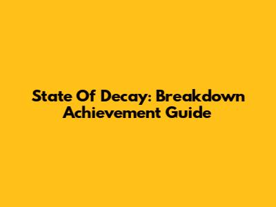 State Of Decay: Breakdown Achievement Guide