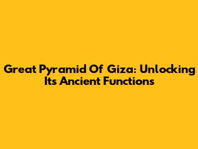 Great Pyramid Of Giza: Unlocking Its Ancient Functions
