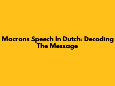 Macron's Speech In Dutch: Decoding The Message