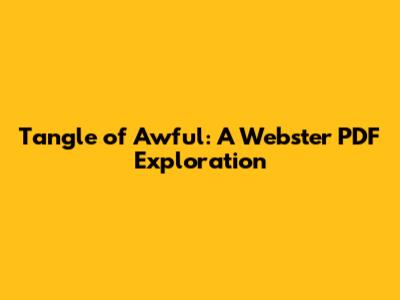 The title "Tangle of Awful: A Webster PDF" is undeniably attention-grabbing. It evokes a sense of mystery and complexity, drawing the reader in with its unusual phrasing. In a world saturated with generic content, a title like this stands out. It promises something unique, something that requires a bit of unraveling. The juxtaposition of "tangle" and "awful" creates an immediate intellectual curiosity. What kind of tangle? And why is it awful? Is it a narrative, a problem, or a concept? When we add the Webster PDF element, it shifts the perception from a potentially fictional or anecdotal account to something more structured and informative, likely rooted in language and its precise meanings. This blend of the intriguing and the authoritative is powerful. It suggests that the content will be both engaging and intellectually stimulating. It appeals to those who enjoy wordplay, linguistic exploration, and deep dives into concepts. It's for the person who finds beauty in the precise definition of a word and the history behind it. The PDF format further enhances its appeal by making it easily accessible for personal study or academic use. You can save it, print it, and refer back to it whenever you need to. It's a digital artifact that holds potentially valuable information. The fact that it's presented as a Webster PDF implies that it adheres to high standards of accuracy and comprehensiveness, much like the dictionaries Webster himself is famous for. This reassures the reader that they are getting well-researched and thoughtfully presented information. It's not just a fleeting thought; it's a carefully constructed exploration. The "tangle" could also represent the complex web of issues that arise when discussing or dealing with things that are truly awful – societal problems, ethical dilemmas, or even psychological distress. By framing it within a Webster PDF, the author is likely suggesting a methodical and analytical approach to understanding these complexities, breaking them down and defining them with precision. This makes the title more than just a quirky phrase; it's a promise of a deep, insightful, and well-documented exploration into a challenging but important topic, presented in a format that is both modern and enduring.