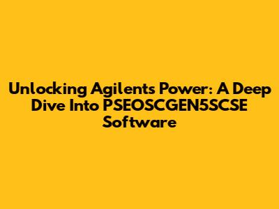 Unlocking Agilent's Power: A Deep Dive Into PSEOSCGEN5SCSE Software
