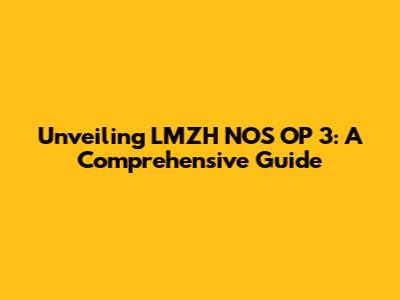 Unveiling LMZH NOS OP 3: A Comprehensive Guide