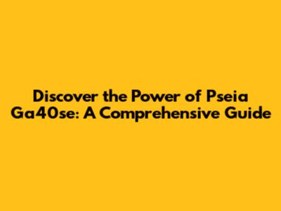 Discover the Power of Pseia Ga40se: A Comprehensive Guide