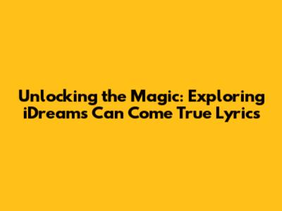 Hey music lovers! Ever get chills listening to a song that just gets you? Well, that's the feeling we're diving into today as we explore the heartwarming world of "iDreams Can Come True" lyrics. This isn't just any song; it's a journey, a belief, and a gentle reminder that those big, bold dreams we hold inside? They're totally within reach. So, grab your headphones, get comfy, and let's dissect the beautiful messages hidden within these inspiring lyrics. We'll break down the meaning, explore the emotions, and maybe even find a little bit of inspiration for our own lives. Buckle up, because we're about to go on a lyrical adventure!
